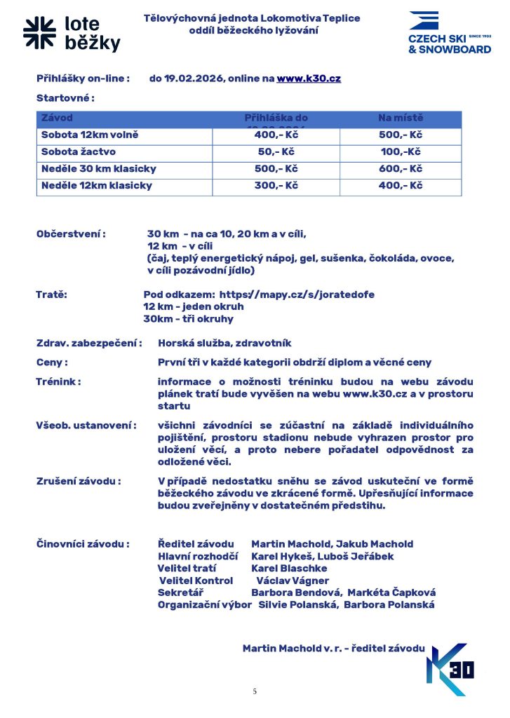 PŘIHLÁŠKY: online do čtvrtka 19.02., nebo na místě za zvýšené startovné
