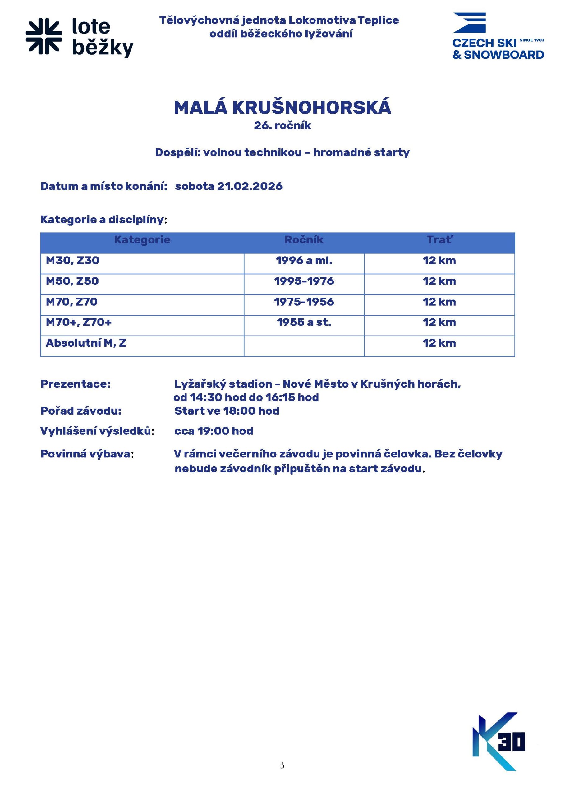 21.-22.02.2026 | Krušnohorská třicítka | Nové Město v Krušných horách